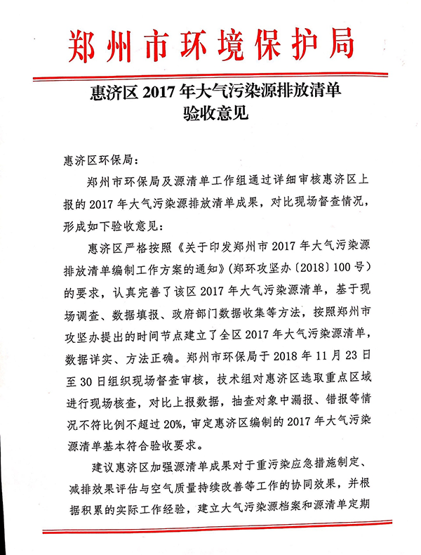 我司承接的“中原區、二七區、惠濟區2017年大氣污染源排放清單”順利通過驗收